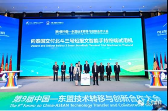9月9日,中国北斗,福耀东盟。在第9届中国-东盟技术转移与创新合作大会上,北方雷科向泰国捐赠30套北斗三号智能手持终端试用机。通过此次活动,充分发挥公司核心产品的领先优势,深化中泰两国友谊,同时为进一步服务全球、造福人类而向世界坚定提供稳定可靠、性能卓越的中国北斗解决方案!
